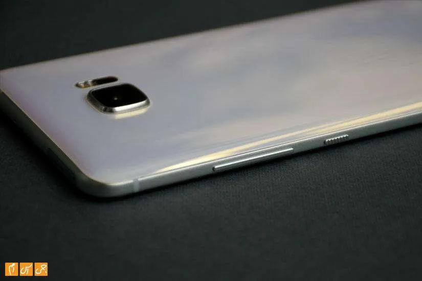 نمای پشتی گوشی نیز همانطور که اشاره کردیم با شیشه پوشانده شده و در قسمت بالای آن دوربین بیرون زده گوشی همراه با فلاش دوگانه و فوکوس لیزری خودنمایی میکنند.