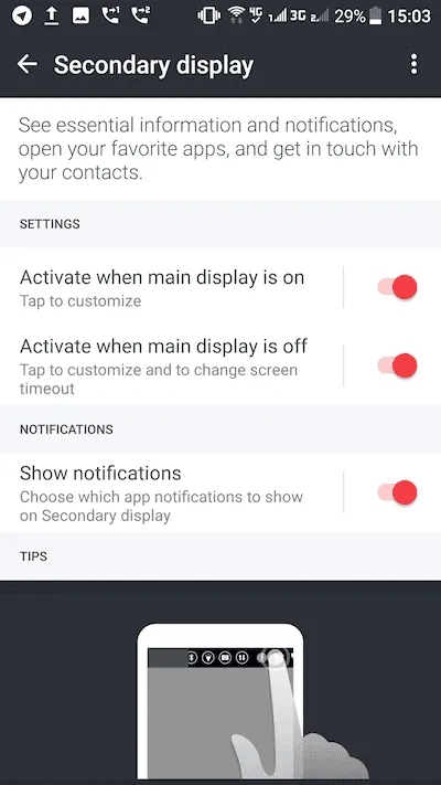 برای شخصیسازی صفحه نمایش دوم یو اولترا نیز گزینهای مخصوص در Settings گوشی به نام Secondary Display قرار گرفته است. در آن بخش مشخص میکنید صفحه نمایش دوم چه زمانی روشن شود. به همین ترتیب تعیین میکنید هنگامی که صفحه نمایش دوم روشن است چه مواردی را از بین مخاطبین، آب و هوا، شورت کات اپلیکیشنها و … نشان دهد. همچنین میتوانید مشخص کنید که نوتیفیکیشن از چه اپلیکیشنهایی در صفحه نمایش دوم گوشی نشان داده شود. به عنوان مثال اگر نوتیفیکیشن جیمیل یا اینستاگرامتان بیش از بقیه اهمیت دارد، میتوانید تعیین کنید که فقط نوتیفیکیشنهای اپلیکیشنهای مذکور در صفحه نمایش دوم نمایان شود.