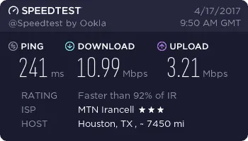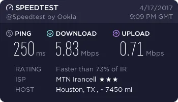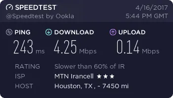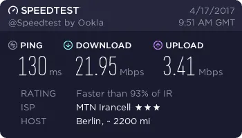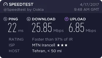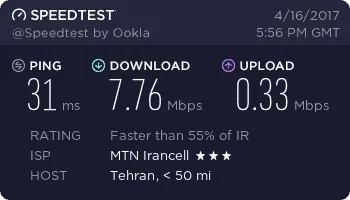 ما به عنوان نمونه مودم DT-350 را در چند نقطه از شهر تهران تست کردیم تا بتوانید ذهنیت درستی از سرعت آن پیدا کنید. این تستها در محلههای نیاوران، مجیدیه، شیخ بهایی و پونک با 4 سرور یکسان انجام شده است.