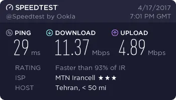وقتی به نتایج این تستها نگاه میکنیم درمییابیم، به جز نیاوران، در سایر محلهها سرعت دانلود به طور متوسط حدود 5 تا 6 مگابیت در ثانیه است. همچنین میانگین گرفتن از سرعت دانلود و آپلود این 16 تست، که در نقاط مختلف شهر تهران انجام شده است، مشخص میکند سرعت دانلود TD-LTE ایرانسل در تهران حدود 7Mbps و سرعت آپلود آن حدود 2Mbps است.