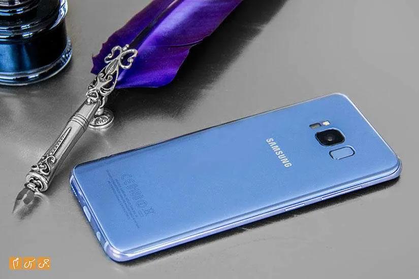 قاب پشتی از شیشه ساخته شده است و همانند قاب جلویی لبههای خمیده دارد. در این قاب دوربین اصلی در کنار فلاش،سنسور ضربان قلب و سنسور اثرانگشت جای گرفتهاند. بیرونزدگیای در لنز دوربین دیده نمیشود و دوربین با بدنه در یک سطح هستند. در گوشیهایی مانند گوگل پیکسل قرار گرفتن سنسور در پشت گوشی بسیار خوب است زیرا در مکان درستی قرار گرفته. در گوشیهایی مانند پیکسلها سنسور زیر لنز دوربین و دقیقا در بخش میانی قاب پشتی تعبیه شدهاند این در حالی است که در گلکسی اس 8 سنسور در بخش کناری قاب پشتی قرار گرفته است و این مکان چندان مناسب قرار گرفتن سنسور اثرانگشت نیست و کاربر بهطور حتم در ابتدا اشتاباها لنز دوربین را به جای این سنسور لمس خواهد کرد.