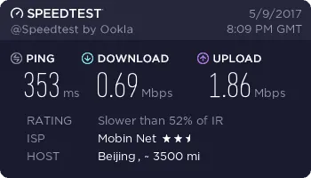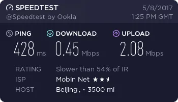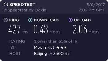 نوسان سرعت زیادی داره .بین 400 کیلو باید تا نهایتا 800 یا 900 کیلو بایت متغیر هست.بعضی وقتا هم برای دلخوشی یه لحظه 2 مگ رو نشون میده