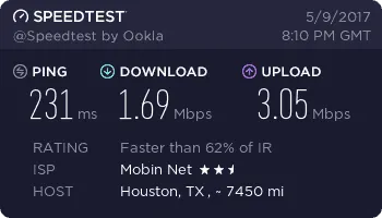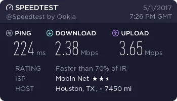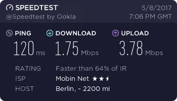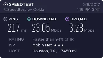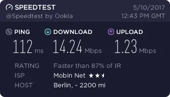 به همین خاطر سرعت TD-LTE مبین نت را در برخی از بخشهای شهر تهران بررسی کردیم. در منطقه نیاوران ماکزیمم سرعت دانلود 26.70 مگابیت بر ثانیه، در منطقه مجیدیه ماکزیمم سرعت 30.55 مگابیت بر ثانیه، در منطقه پونک ماکزیمم سرعت 9.97 مگابیت بر ثانیه و در منطقه شهر ری ماکزیمم سرعت دانلود 17.48 مگابیت بر ثانیه به دست آمده است.