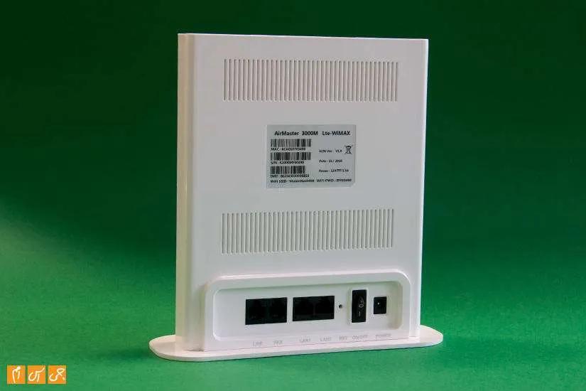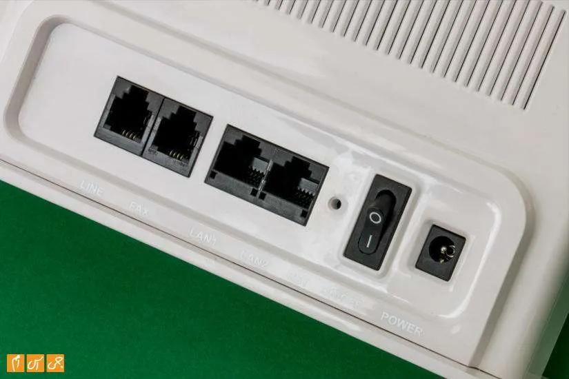 رنگ دستگاه سفید است و چراغهای وضعیت روی نوار آینهای وسط آن جای گرفتهاند؛ چراغهای پاور، وای فای، WLAN، LAN، ویس، سیم کارت و WPS. از طریق این چراغها میتوانید از اتصال برق، برقرای ارتباط WAN، فعال بودن وای فای و غیره به سادگی مطلع شوید. در پشت دستگاه نیز پورتهای اتصال قرار دارند؛ پورتهای فکس، لاین، لن و پاور. دکمه خاموش و روشن نیز در کنار پورت پاور تعبیه شده است.
