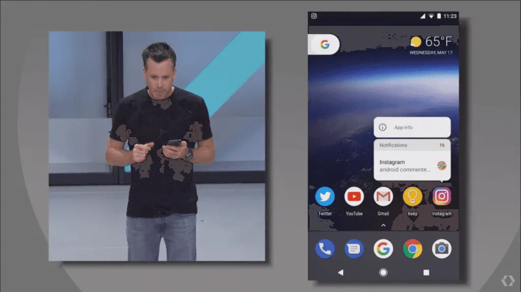 این ویژگی تحولی در بخش نوتیفیکیشنهای اندروید به وجود می آورد. با استفاده از این ویژگی جدید راه رسیدن به نوتیفیکیشن گسترده شده است. در این ویژگی یک دایره کوچک روی آیکون اپلیکیشن ظاهر میشود. این آیکون زمانی روی اپلیکیشن ظاهر میشود که نوتیفیکیشن خوانده نشده در آن اپ وجود داشته باشد. با فشار طولانی روی این آیکون پیشنمایشی از آن روی صفحه نمایان میشود.