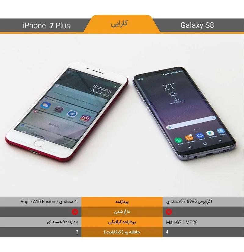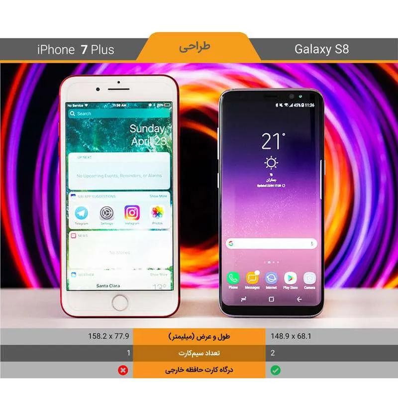 خانواده گلکسی اس سامسونگ همیشه در مرکز توجه کاربران و کارشناسان موبایل بوده و هست. جدیدترین عضو این خانواده گلکسی اس 8 نام دارد که با ورودش جان تازهای در کالبد موبایلهای سامسونگ دمیده است. از آن طرف آیفون هم همیشه رقیبی سرسخت برای گوشیهای ساخت کمپانیهای دیگر به حساب میآید. در این مقاله میخواهیم دو گوشی آیفون 7 پلاس و گلکسی اس 8 را کنار هم بگذاریم و مقایسهای کاربردی میان این دو داشته باشیم.