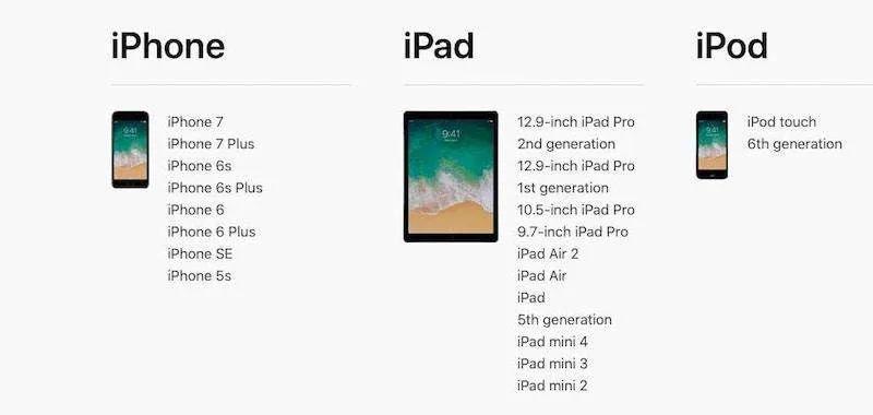 دستگاه‌های تحت پشتیبانی iOS 11