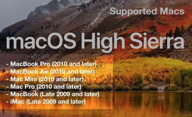 دستگاه‌های تحت پشتیبانی macOS High Sierra