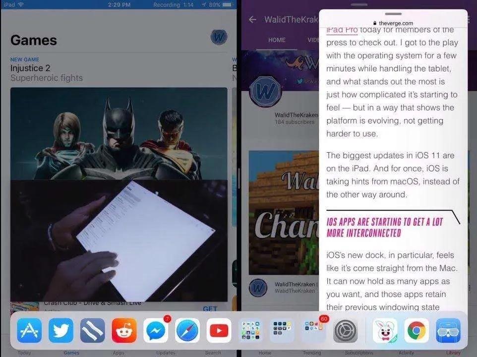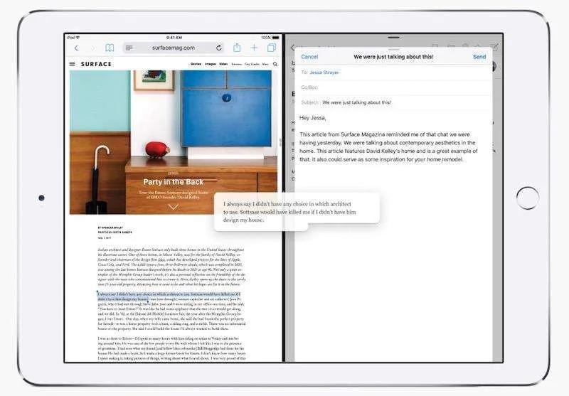 اپل سال گذشته در iOS 10 توجه زیادی به آیپد نکرد اما امسال با رونمایی iOS 11 این تبلت را تبدیل به یکی از رقبای اصلی کامپیوترهای شخصی و تبلت‌ها با سیستم‌عامل دسکتاپ همانند Surface مایکروسافت کرده است. به لطف آی‌او‌اس ۱۱ آیپد بیش از هر زمانی دیگر شبیه به یک کامپیوتر شخصی با سیستم‌عامل دسکتاپ شده است. مواردی مانند داک، اپ سوییچر جدید، قابلیت Drag and Drop، مالتی تسکینگ جدید و برنامه Files کمک شایانی در این زمینه کرده است.