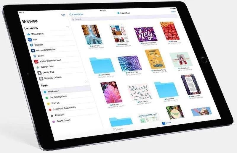 بلاخره پس از گذشت ۱۱ سال از اولین نسخه iOS شاهد اضافه شدن برنامه رسمی مدیریت فایل در این سیستم‌عامل هستیم. اگرچه پیش از این کاربران با نصب برنامه‌های غیر رسمی اپل در AppStore می‌توانستند فایل‌های خود را مدیریت کنند اما هم‌اکنون در آی‌او‌اس ۱۱ برنامه Files به صورت پیش فرض نصب می‌شود و کاربران راحت‌تر از گذشته می‌توانند با آن کار کنند. برنامه iCloud Drive نیز دیگر در iOS 11 وجود ندارد و جای خودش را به Files داده. به لطف Files کاربران می‌توانند تمام محتویات درون سرویس‌های ابری نظیر Google Drive, Adobe Creative Cloud, Dropbox, Box, Baidu و iCloud Drive را به صورت یک‌جا در این برنامه مشاهده کنند.