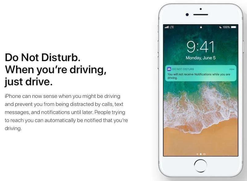 اپل همیشه به سلامت کاربرانش اهمیت می‌دهد. یکی از قابلیت‌‌های خوب اضافه شده Do Not Disturb هنگام رانندگی است. حتی اگر آیفونتان به Car Play متصل نباشد، گوشی‌تان با استفاده از سنسورهایی مانند جی‌پی‌اس، بلوتوث و ژیروسکوپ و… به صورت خودکار تشخیص می‌دهد شما در حال رانندگی هستید. برای صفحه‌نمایش خاموش شده و هنگام دریافت نوتیفکیشن‌های غیرضروری روشن نخواهد شد. همچنین می‌توانید در شرایط خاص افرادی را تعیین کنید که از این قاعده مستثنا باشند. تا در مواقع ضروری مشکلی ایجاد نشود.