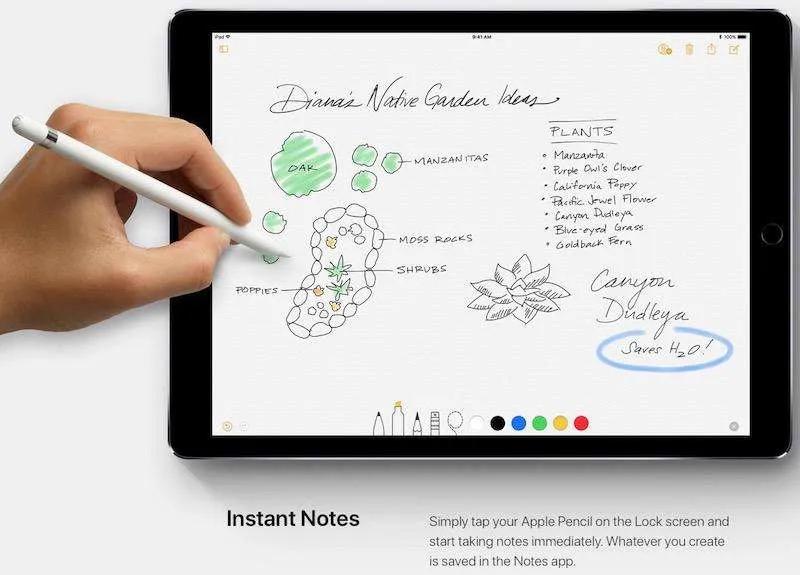قلم هوشمند اپل در iOS 11 کارایی بیشتر نسبت به گذشته دارد و انجام بسیاری از امور با آن راحت‌تر شده است. به طور مثال با قابلیت Instant Note می‌توانید بدون نیاز به باز کردن قفل آیپد در حالت Lock Screen اقدام به یادداشت و نقاشی کنید تا آیپد به صورت خودکار آن را در Note ذخیره کند.