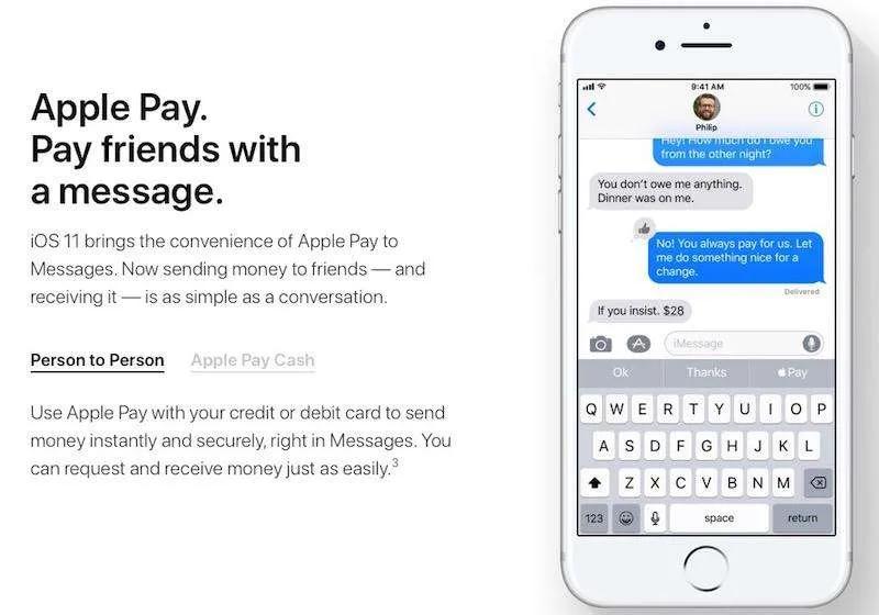 سرویس پرداخت الکترونیکی اپل روز به روز با پیشرفت‌های چشمیگیری همراه می‌شود. در iOS 11 این سرویس با بهبودهایی خوبی همراه بوده است.  یکی از قابلیت‌های جدید Apple Pay ارسال و دریافت پول از دوستانتان است. به طور مثال اگر دوستتان در Messages از شما درخواست پول کرد می‌توانید همان جا به وسیله Apple Pay مبلغ درخواستی را برای آن شخص ارسال کنید.