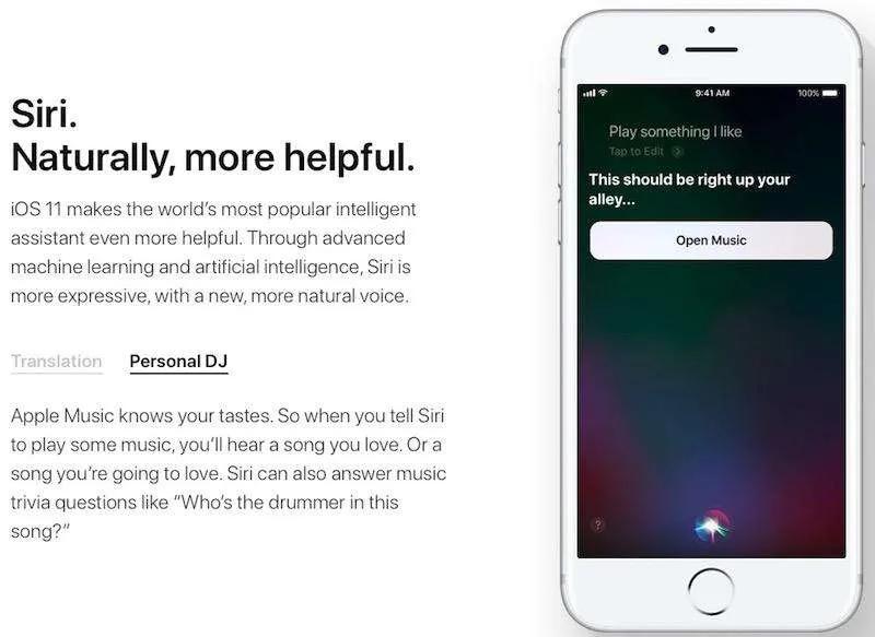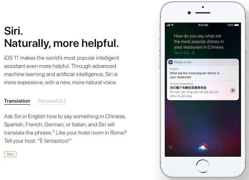به گفته اپل دستیار صوتی سیری باهوش‌تر از قبل شده است. یکی از قابلیت‌های جدید سیری در iOS 11 ترجمه همزمان مکالمه از زبانی به زبان دیگر است. البته این قابلیت پس از انتشار نسخه نهایی iOS 11 نیز همچنان در حالت آزمایشی عرضه می‌شود.