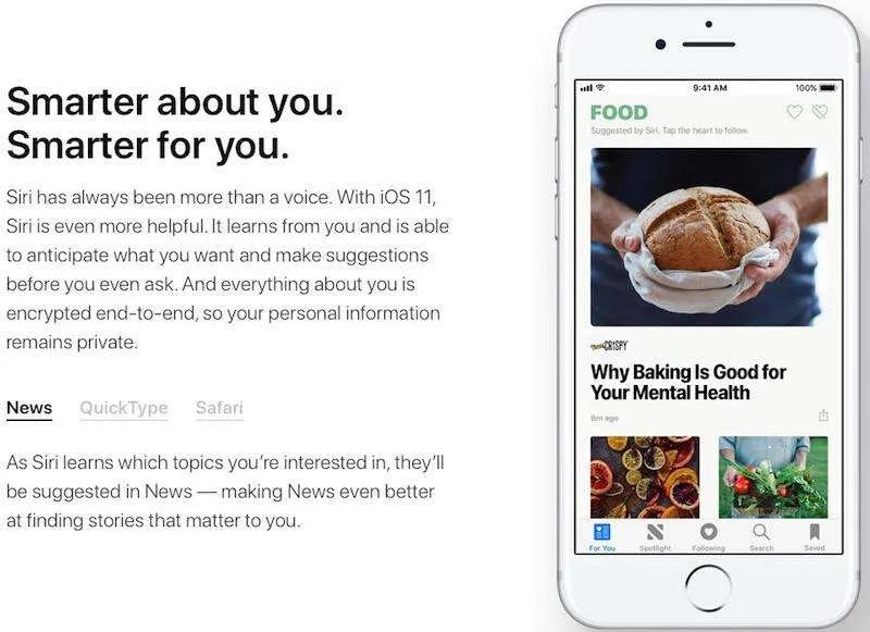 سیری با استفاده از اطلاعاتی از شما مانند جست و جوهایی که در اینترنت کرده‌اید و.. جمع آوری می‌کند اخبار مورد علاقه‌تان در برنامه News نمایش می‌دهد.
