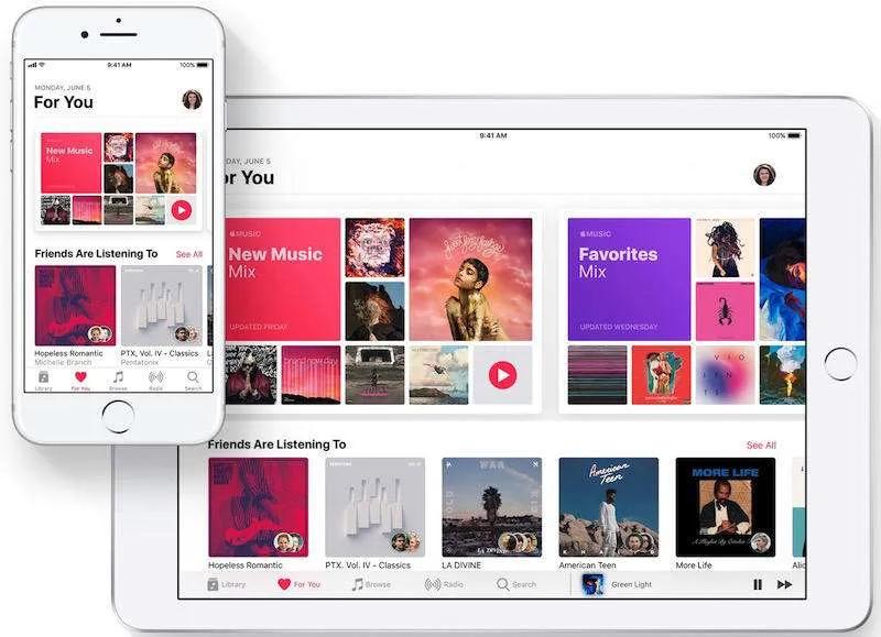 در آی‌اواس ۱۱ می‌توانید پلی‌لیست، خواننده و آهنگ مورد علاقه‌تان را با دوستان خود به اشتراک بگذارید و ایستگاه‌های رادیو‌یی که دیگران بیشتر به آن‌ها گوش می‌دهند را مشاهده کنید.