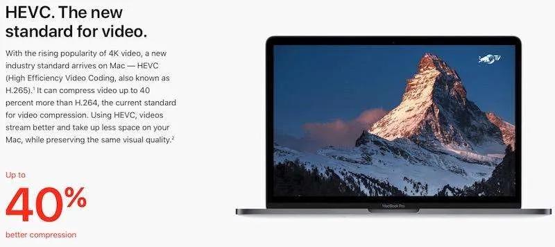 همانند آی‌او‌اس ۱۱، macOS High Sierra  از فرمت جدید ویدئویی HEVC پشتیبانی می‌‌کند. فرمت HEVC نسبت به فرمت HEVC بیش از ۴۰ درصد فضای کمتری اشغال می‌کند نمایش ویدئو‌ها را روان‌تر از گذشته ممکن می‌سازد.