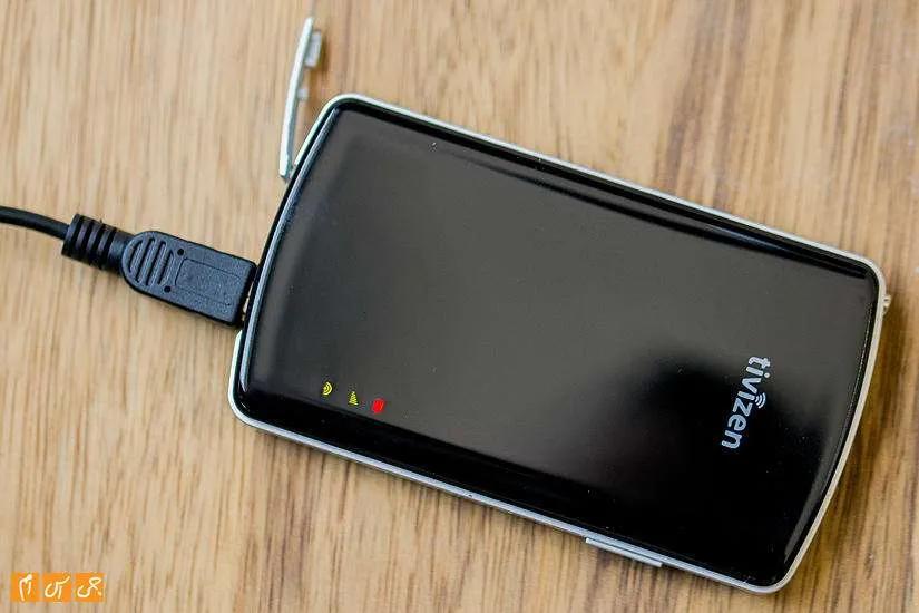 ظاهر برای این محصول شاید اهمیت زیادی نداشته باشد زیرا قرار نیست خیلی در دید باشد؛ اما بههرحال کمپانی سازنده هیچچیز برای طراحیاش کم نگذاشته است. دستگاه مستطیلی کوچک با لبههای گرد، مشکیرنگ و براق است. جنس قاب جلو و عقب از پلاستیک و فریم اطراف هم از پلاستیک است که طرحی شبیه به فلز دارد. روی قاب جلو لوگوی tivizen بزرگ حک شده و پایین و راست سه چراغ hotspot، آنتن و باتری دیده میشوند. چراغها همیشه سبز رنگ و روشن هستند، تنها چراغی که با پرش و تغییر رنگ میزان به کاربر هشدار میدهد چراغ باتری است.