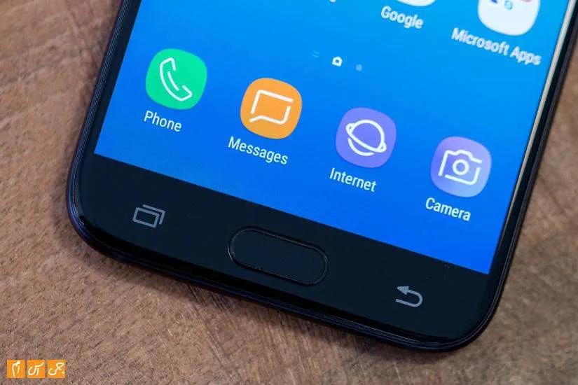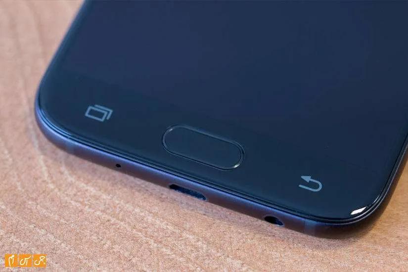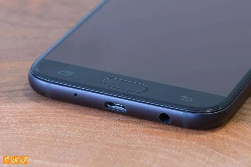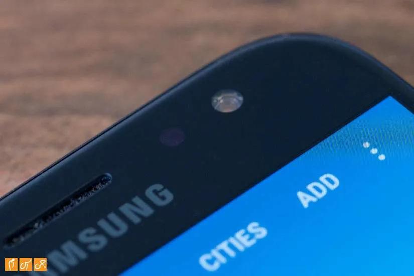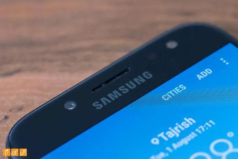 با همان نگاه اول پی می‌برید که این گوشی ساخت سامسونگ است. شباهت زیادی بین طراحی‌ J5 2017 و خانواده Galaxy A به وجود آمده است و به طور حتم جنس فلزی بدنه در این شباهت بی تاثیر نیست. با نگاه به گوشی از جلو صفحه‌نمایشی 5.2 اینچی را می‌بینید که حدود 71 درصد از فضای قاب جلو را اشغال کرده است. بالا و پایین صفحه‌نمایش حاشیه‌ها زیادند اما در کناره‌ها شاهد حاشیه‌های بسیار کمی هستیم. پایین صفحه‌نمایش کلید فیزیکی Home کنار کلیدهای لمسی بازگشت به عقب و برنامه‌های اخیر دیده می‌شود. متاسفانه هیچ نوری برای این دو کلید خازنی در نظر گرفته نشده و در شب پیدا کردن آن‌ها مشکل است.