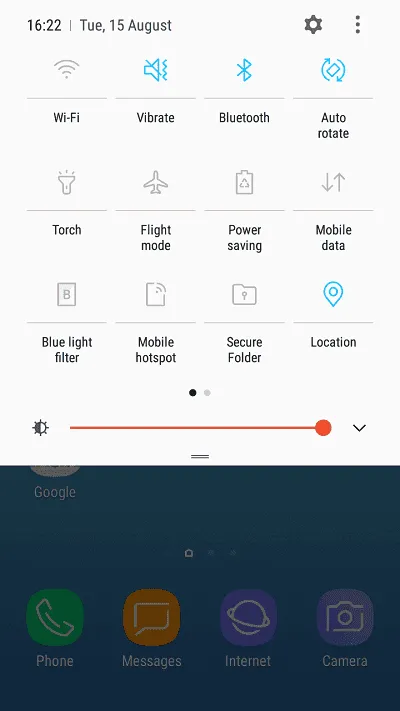 نوتیفکیشن بار طراحی زیبایی دارد. سوییچ‌ها با رنگ خاکستری در این بخش قرار دارند که با روشن کردنشان به آبی تغییر رنگ می‌دهند.