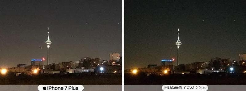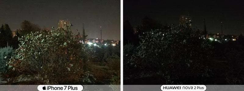 عکاسی در شب دوربین اصلی رو ای کاش در مورد هواوی روی مود نایت شات هم تست میشد. چون گوشی اپل بصورت اتوماتیک و بدون انتخاب کاربر تنظیمات شب رو انتخاب میکنه ولی در نوا ۲ پلاس این امکان دستی هست و قطعا نوا ۲ در شب و حالت نایت مود عکس های خوبی میگیره این رو خودم تست کردم.