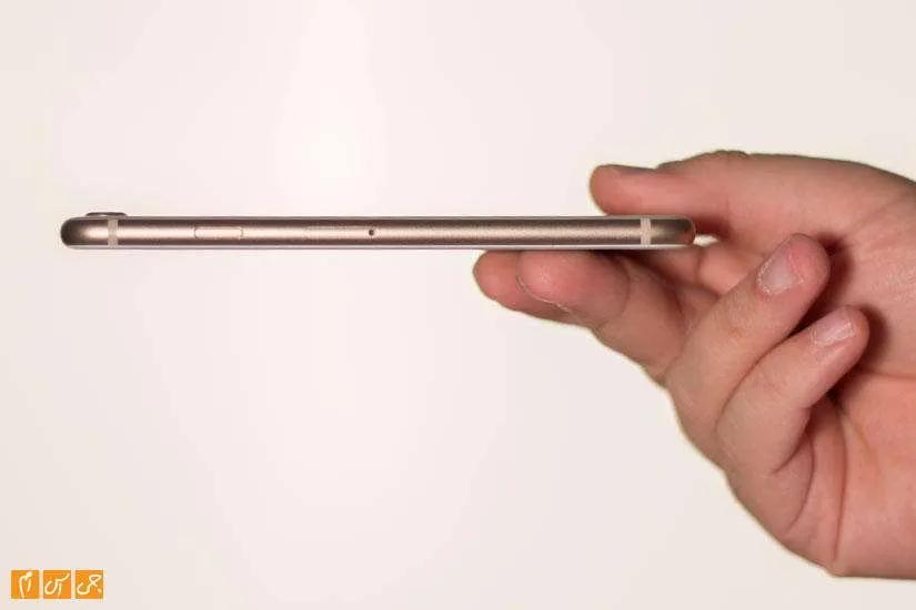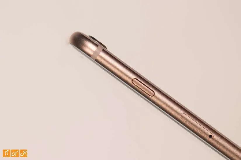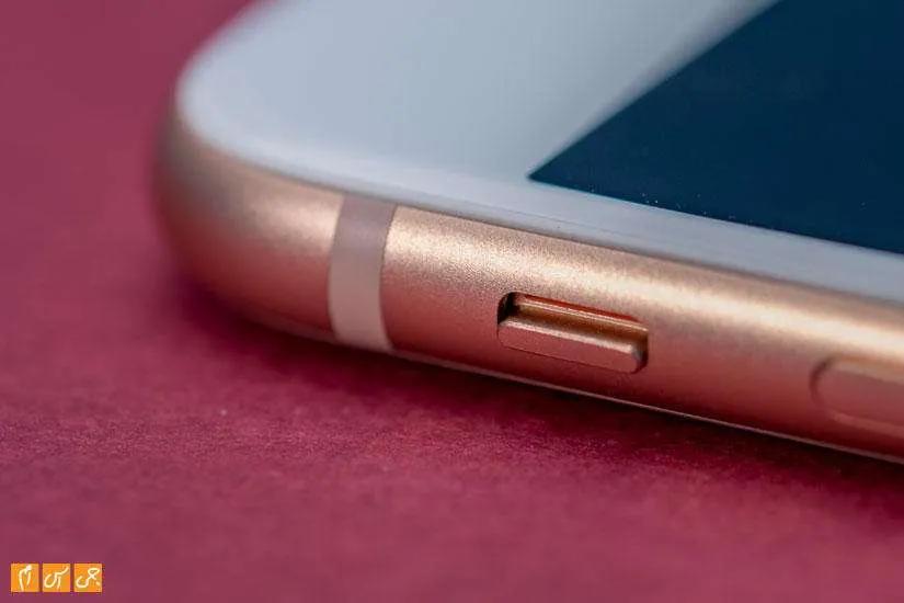 کلید پاور سمت راست گوشی در کنار درگاه سیمکارت قرار دارد و کلیدهای ولوم و سایلنت کردن هم سمت چپ. پایین گوشی درگاه ارتباطی لایتنینگ و دو طرفش سوراخهایی که یکی میکروفون و دیگری اسپیکر را در زیرش جای داده قرار دارند. بالای گوشی هیچ گزینهای نیست و همانطور که انتظار داشتیم خبری از هدفون جک 3.5 میلیمتری صدا نیست.