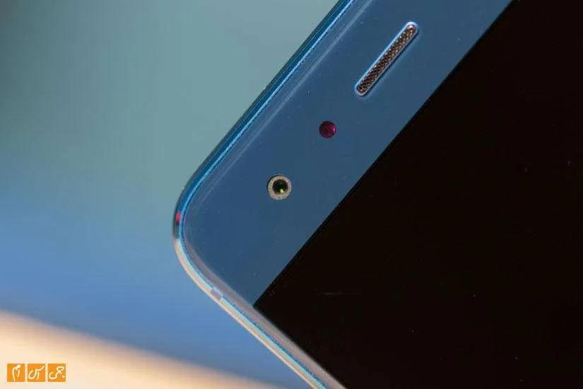 بیدلیل نیست که یک گوشی تا این حد زیبا میشود زیرا طراحان آنر همه چیز را رعایت کردهاند. قاب جلویی گوشی هم هماهنگ با سایر قسمتهای دستگاه و همرنگ آنها در نظر گرفته شده است. صفحهنمایش 5.2 اینچی بیشتری فضای قاب جلویی را به خودش اختصاص داده است. شاید این گوشی یکی از بی حاشیههای بازار نباشد اما حاشیههای صفحهنمایشش در کنارهها کم است. پایین صفحهنمایش کلید فیزیکی Home قرار دارد که قابلیت فشار دادن ندارد و لمسی است. این کلید علاوه بر وظایفش در کنترل حرکتی در منوها وظیفه سنسور اثرانگشت بودن را هم برعهده دارد. بالای صفحهنمایش خروجی صدای مخاطب کنار دوربین دوم و سنسورها دیده میشوند. یک LED هشدار دهنده هم در اینجا وجود دارد که داخل خروجی صدای مخاطب است.