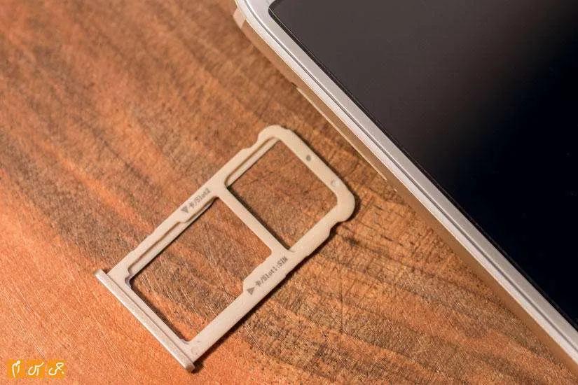 درگاه سیم‌کارت سمت چپ گوشی قرار گرفته است و کاوری فلزی دارد در حالی که بدنه‌اش پلاستیکی است. درگاه سیم‌کارت در این گوشی از دو سیم‌کارت همزمان پشتیبانی می‌کند  و درگاه سیم‌کارت دوم هیبریدی است بدین معنی که می‌توان در آن از کارت حافظه خارجی هم استفاده کرد اما با استفاده از کارت حافظه خارجی امکان استفاده از سیم‌کارت دوم وجود ندارد.