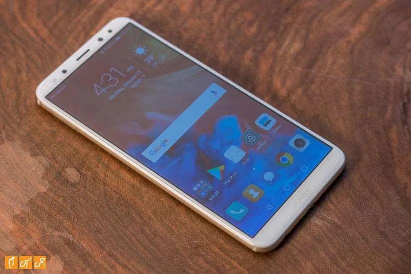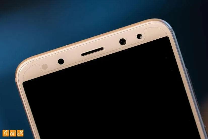 در قاب جلویی صفحه‌نمایش بزرگ گوشی قرار دارد که حاشیه‌هایش هم در بالا و پایین و هم در کناره‌ها خیلی زیاد نیست. این صفحه‌نمایش بیشتر فضای قاب جلویی را اشغال کرده و لبه‌هایش کمی خمیدگی دارد که نشان می‌دهد صفحه‌نمایش گوشی از شیشه 2.5D استفاده کرده است. برای قاب پشتی این گوشی رنگ‌های مشکی، طلایی و آبی در نظر گرفته شده است که ما رنگ طلایی آن را در اختیار داشتیم. در رنگ طلایی قاب جلویی گوشی، که اطراف صفحه‌نمایش را در بر گرفته، سفید رنگ است و همخوانی خوبی با رنگ قاب پشتی دارد.