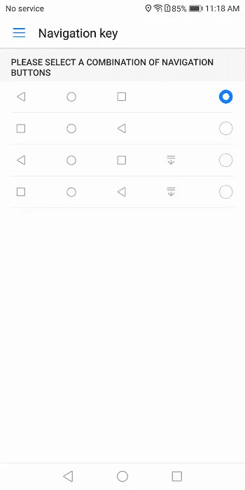 Navigation Key: 4 حالت نمایش کلیدهای ناوبری را به کاربر می‌دهد که در دو حالت از این 4 حالت امکان اضافه کردن کلیدی مخصوص برای باز کردن نوتیفیکیشن بار وجود دارد.
