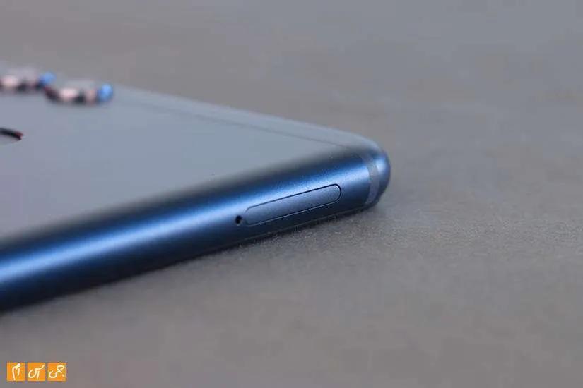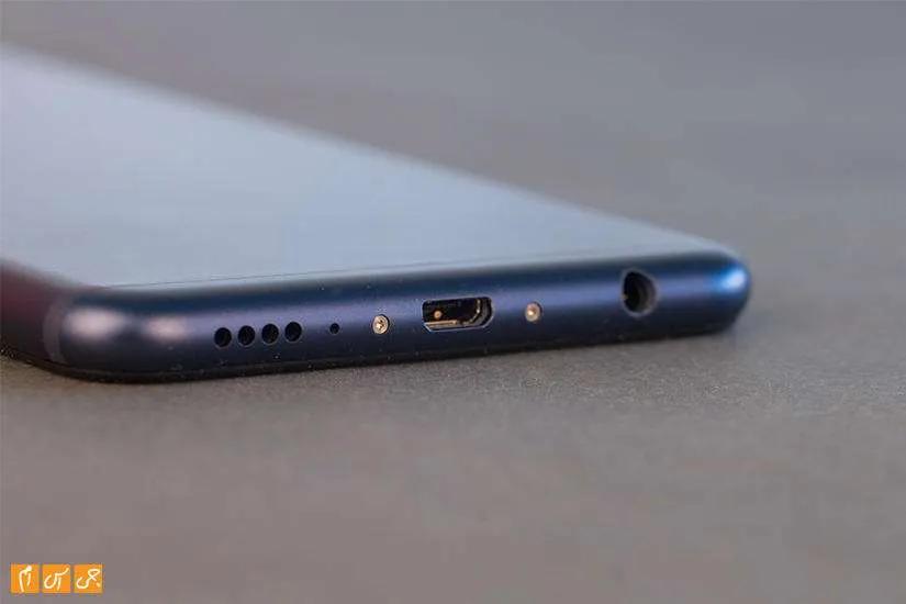 پایین گوشی اسپیکر، جک 3.5 میلی‌متری صدا، میکروفون اصلی و درگاه ارتباطی میکرو یو اس بی قرار دارند. بر خلاف طراحی مدرن و به‌روز از درگاه تایپ سی برای گوشی استفاده نشده که کمی عجیب است. در لبه سمت راست دستگاه شاهد حضور کلیدهای ولوم و پاور هستیم که طراحی و جنسی شبیه به هم را دارند. در لبه سمت چپ هم درگاه سیم‌کارت‌ها را می‌بینیم که کاورش به خوبی با لبه دستگاه هماهنگ است و هیچ بیرون‌زدگی یا تو رفتگی‌ای ندارد. بالای دستگاه هم جزئیات زیادی دیده نمی‌شود و فقط میکروفون دوم گوشی قرار دارد.