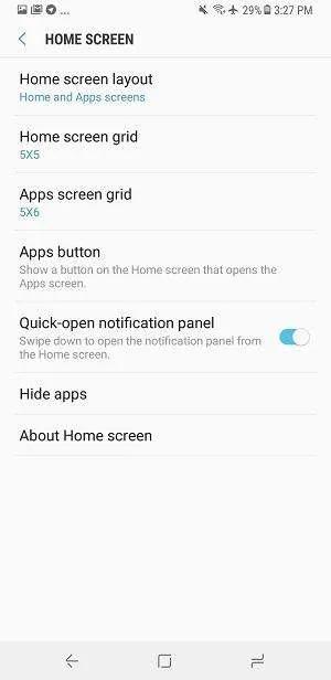 Home Screen در این تنظیم از نظر ظاهر نرمافزاری گوشی امکان تغییراتی وجود دارد که دست کاربر را باز میگذارند. اولین تنظیم مربوط به نوع نمایش صفحه اصلی است. دو تنظیم در اینجا دیده میشود در حالت اول هر دو صفحه اصلی و صفحه برنامهها وجود دارند اما با انتخاب حالت دوم فقط صفحه اصلی باقی میماند و همه برنامهها در همان صفحه اصلی نمایش داده میشوند و صفحه برنامهها حذف میشود. تنظیم دیگر مربوط به حضور یا حذف کلید برنامهها است؛ دو حالت در این تنظیم وجود دارد اول اینکه کلیدی مخصوص باز کردن صفحه برنامهها روی صفحه اصلی و کنار آیکونهای پایین صفحه وجود داشته باشد، حالت دوم به کاربر امکان میدهد با حذف این کلید توانایی استفاده از یک آیکون اضافی را پایین صفحه داشته باشد و صفحه برنامهها را با بالا کشیدن انگشت روی صفحه اصلی نمایان سازد. تنظیم کاربردی و دوست داشتنی دیگر مربوط به پنل نوتیفیکیشن سنتر است. اگر این تنظیم را فعال کنید با کشیدن انگشت روی صفحه اصلی به سمت پایین نوتیفیکیشن سنتر نمایان میشود که برای گوشیهایی با طول زیاد بسیار کاربردی است. در نهایت Hide Apps به شما امکان میدهد تعدادی از برنامههایتان را که دوست ندارید روی صفحه برنامه باشند مخفی کنید. با مخفی کردن آیکون برنامه امکان استفاده از آنها از بین نمیرود اما دیگر در صفحه اپ دراور نمایش داده نمیشوند و فقط با جستجو میتوانید آنها را پیدا کنید.