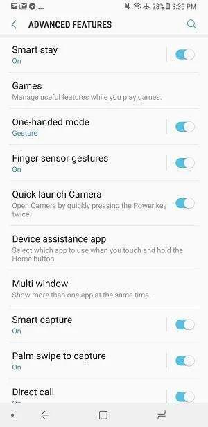 از دیگر تنظیماتی که در بخش ویژگیهای برتر قرار دارند میتوان به اسکرین شات گرفتن از صفحه با کف دست، تماس با شماره نمایش داده شده روی صفحه با برداشتن و نزدیک کردن دستگاه به گوش، آگاهی از نوتیفیکیشن با برداشتن گوشی از روی میز با ویبره زدن، سایلنت کردن دستگاه با گذاشتن کف دست روی صفحهنمایش یا برگرداندن دستگاه هنگام زنگ زدن و استفاده از دو نسخه از پیامرسانهایی که روی گوشی نصب کردهاید با دو اکانت متفاوت نام برد.