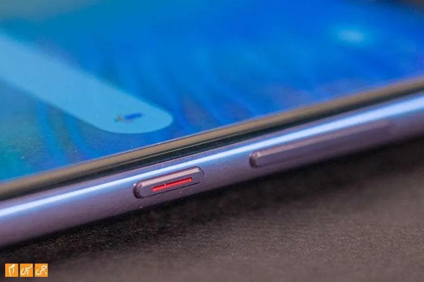 لبه سمت راست کلیدهای ولوم و پاور قرار گرفتهاند. کلید ولوم وسطش یک شیار دارد که از کلید ولوم قابلتشخیص باشد؛ علاوه بر این رنگ این شیار قرمز است.