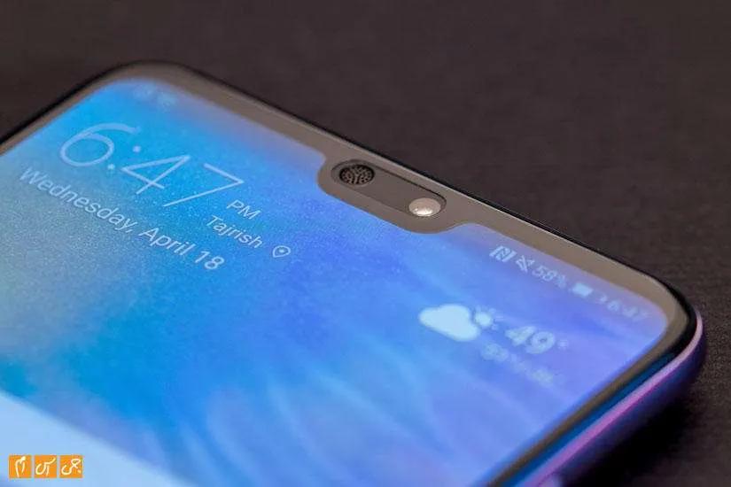 برای اینکه قاب پشتی دستگاه خیلی شلوغ نباشد هوآوی تصمیم گرفته تا سنسور اثرانگشت را در قاب جلویی دستگاه جای دهد. صفحهنمایش تمام صفحه گوشی حدود 82 درصد قاب جلو را اشغال کرده است درحالیکه بالایش نوار باریکی به نام ناچ دارد. این نوار باریک به طور حتم شما را به یاد ناچی میاندازد که بالای صفحهنمایش آیفون 10 قرار دارد. این ناچ اگرچه ظاهر مناسبی برای قاب جلویی به همراه نیاورده است اما توجه داشته باشید که به لطف همین ناچ است که هوآوی توانسته صفحهنمایشی 6.1 اینچی را داخل قاب جلوی این گوشی جای دهد.