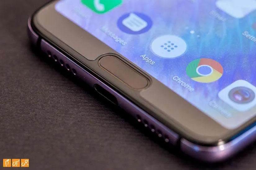 جلوی گوشی صفحهنمایش 6.1 اینچی فضای بزرگی از قاب را اشغال کرده است درحالیکه بالایش یک نوار باریک به نام ناچ قرار دارد. در این ناچ خروجی صدای مخاطب، سنسورها و لنز دوربین سلفی جای گرفته است. پایین صفحهنمایش هم کلیدی لمسی قرار گرفته که نقش سنسور اثرانگشت را ایفا میکند و علاوه بر این به وسیله آن با یکبار لمس میتوانید به عقب بازگردید، با لمس و نگه داشتن آن از بازیها و برنامهها خارج و درنهایت با کشیدن انگشت روی آن به چپ یا راست لیست برنامههای اخیر را مشاهده کنید.