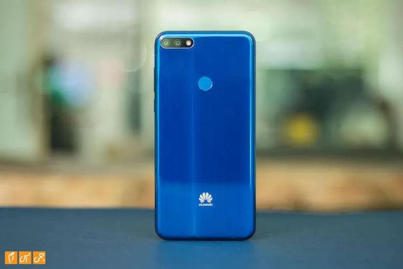 در قاب پشتی دستگاه دو دوربین در غلافی فلزی در سمت چپ و بالا قرار دارند که فلاش LED هم کنارشان است. میکروفون دوم Y7 Prime 2018 هم کنار دوربینها و البته خارج از غلاف روی قاب پشتی دیده میشود. کمی پایینتر سنسور اثرانگشت با طراحی دایرهای شکل خودش دیده میشود که کمی از سطح قاب پشتی پایینتر قرار دارد تا کاربر با لمس بهراحتی بتواند آن را پیدا کند. در انتهای قاب پشتی هم لوگو و نام هوآوی حک شده است که رنگی متمایز با رنگ قاب دارد و بهخوبی خودش را نشان میدهد.