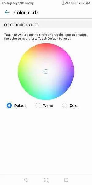 Color Mode: بخشی است که در آن میتوانید گرمای رنگهای در حال نمایش را با توجه بهدلخواه خودتان تنظیم کنید و علاوه بر سهحالتی که در نظر گرفته شده است از دایره رنگیای که در این بخش مشاهده میکنید از گرما یا سرمای رنگی دلخواهتان بهره ببرید.