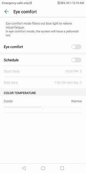 Eye Comfort: این بخش یکی از دوستداشتنیترین بخشهای تنظیمات صفحهنمایش است که با فعال کردن آن نور زرد روی صفحهنمایش غالب میشود و میتوانید از کار کردن با صفحه در محیط کمنور بدون خسته شدن چشمهایتان لذت ببرید.