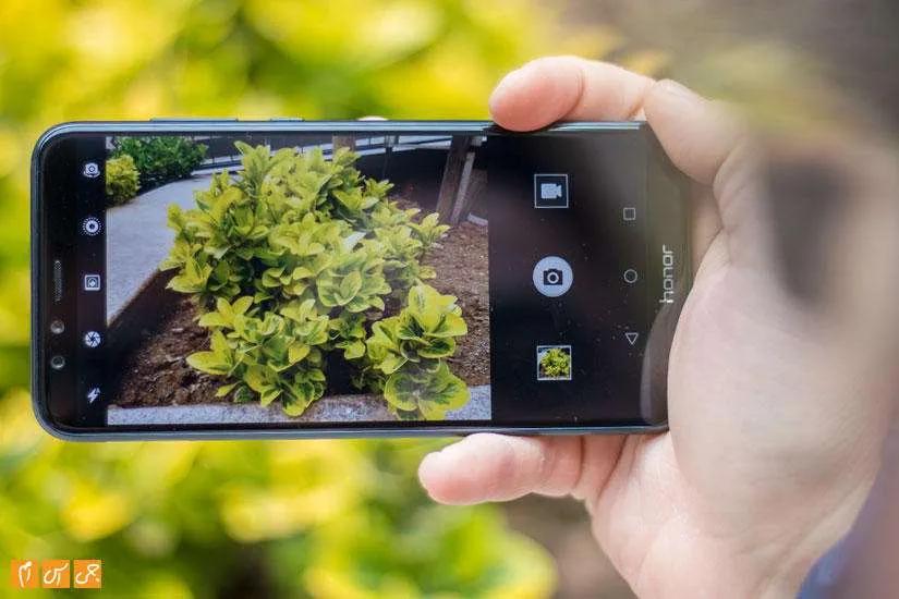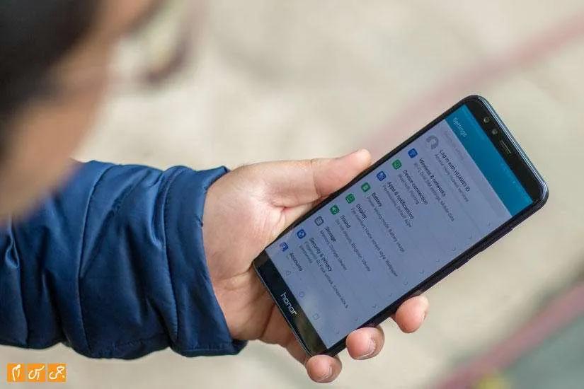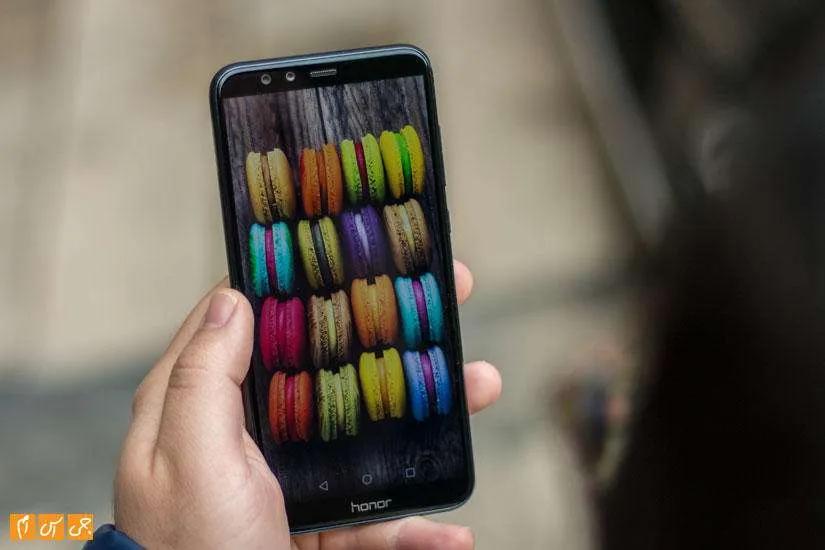 قاب جلو تقریبا در اختیار صفحهنمایش است. این قاب حدود 75.5 درصد از فضای جلو را به خودش اختصاص داده. پایین صفحهنمایش لوگوی آنر مشاهده میشود در حالی که بالای صفحه میتوانید خروجی صدای مخاطب، دوربینهای سلفی و سنسورها را مشاهده کنید. بله درست خواندید نوشتیم دو دوربین این گوشی به دو دوربین سلفی مجهز است.
