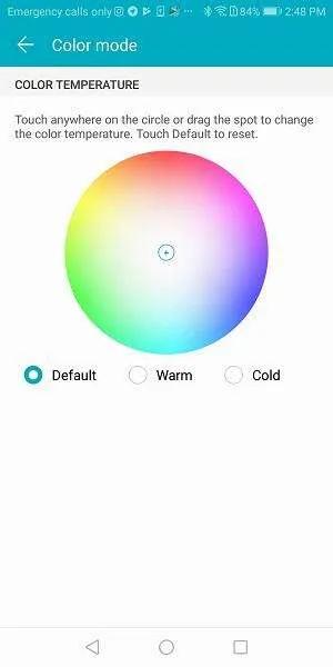 Color Mode: در این بخش سه حالت پیش روی کاربر قرار دارد تا بتواند به دلخواه دمای رنگهای در حال نمایش روی صفحهنمایش را تغییر دهد. علاوه بر این سه حالت یک دایره رنگی در وسط صفحهاین تنظیم دیده میشود که به شما اجازه میدهد بنابر دلخواه از طیف گسترده رنگی بهره ببرید.