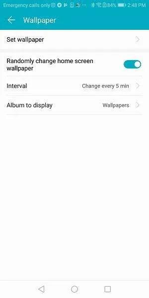 Wallpaper: با رفتن به این تنظیم میتوانید عکسهای پس زمینه را تغییر دهید در حالی که یک تنظیم اضافی در این بخش وجود دارد که به کاربر امکان میدهد تا عکس پس زمینه به صورت اتفاقی از هر 5 دقیقه تا 1 روز عوض شود.