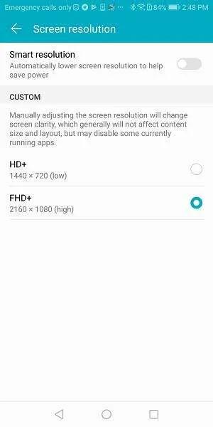 Screen Resolution: در این بخش میتوانید کیفیت صفحهنمایش را از دو حالت HD+ و Full HD+ انتخاب کنید. علاوه بر اینها گزینه دیگری به نام Smart Resolution وجود دارد که به صورت خودکار کیفیت صفحه را کاهش میدهد تا انرژی کمتری مصرف شود.