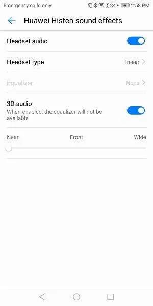 این بخش از تنظیمات گوشی مربوط به زمانی است که هدفون را به گوشی متصل کنید. در این حالت گوشی نوع هدفون متصل شده را تشخیص میدهد در ضمن اینکه میتوانید از فیلتر 3D و زیر مجموعههایش یعنی حالت نزدیک، جلو و صدای گسترده بهره ببرید. نکته این تنظیم این است که اگر حالت 3D را فعال کنید امکان استفاده از اکولایزر برایتان وجود ندارد. این ویژگی فقط زمانی فعال است که حتما هدفون را از طریق جک 3.5 میلیمتری به گوشی متصل کنید یعنی با اتصال گوشی به هدفونهای بلوتوث امکان استفاده از این ویژگی وجود ندارد.