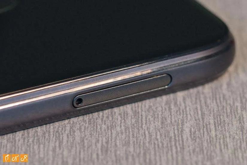 درگاه سیمکارتها سمت چپ گوشی قرار گرفته است. این درگاه کاوری فلزی دارد در حالی که بدنهاش هم از فلز ساخته شده است. پشتیبانی از دو سیمکارت نانو همزمان برای گوشی در نظر گرفته شده است در حالی که درگاه سیمکارت دوم هیبریدی است و میتوانید در عوض استفاده از سیمکارت دوم از کارت حافظه خارجی برای آن استفاده کنید.