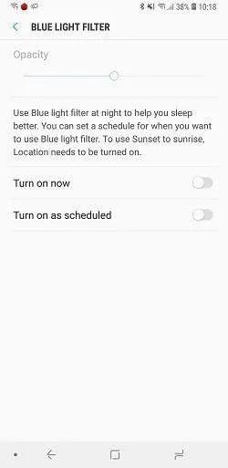 Blue light filter: بهطور حتم دیگر با این تنظیم آشنا شدهاید. تنظیمی کاربردی برای زمانی که میخواهید قبل از خواب یا در محیط تاریک با گوشی کار کنید و به صفحهاش نگاه کنید. با فعال شدن این تنظیم پیکسلهای آبی کم نور یا خاموش میشوند و در عوض نور زرد روی صفحه غالب میشود. در این تنظیم علاوه بر اینکه میتوانید زمانبندی برای خاموش و روشن شدن قرار دهید امکان این را دارید که شدت نور زرد را کم و زیاد کنید.