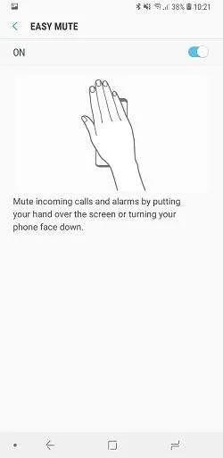 Easy Mute: به شما امکان میدهد زمانی که تماسی دارید یا آلارم گوشی به صدا درآمده با برگرداندن گوشی یا گذاشتن کف دست روی صفحه آن صدا را قطع کنید.