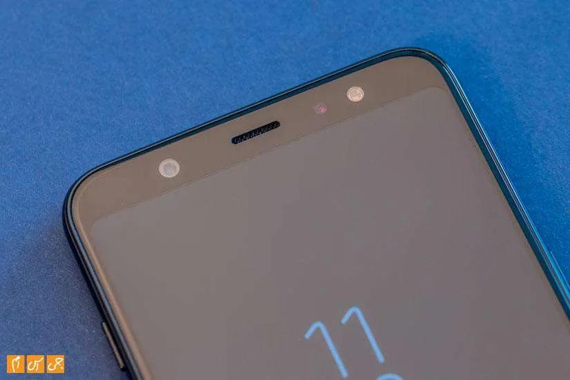 همانند برادر کوچکترش، البته کمی غیر محسوستر، طراحی شبیه به گوشیهای نسل قبل سامسونگ مثل J7 Pro است. به لطف اندازه بزرگتر ای 6 پلاس کمی بهروزتر و مدرنتر از نسخه کوچکتر به نظر میرسد. صفحهنمایشی جلوی دستگاه قرار دارد که مانند بسیاری گوشیهای امروزی حاشیههای کمی، بهخصوص در بالا و پایینش، دارد. کلید فیزیکی مخصوص گوشیهای سامسونگ از قاب جلوی آنها حذف شده است و این گوشی هم یکی از دستگاههایی است که از این زبان جدید طراحی پیروی کرده است.