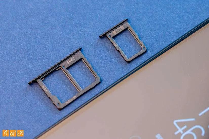 دو درگاه در لبه سمت چپ دستگاه قرار دارند. این دو درگاه مربوط به سیمکارتها هستند اما درگاهی که درپوش بزرگتری دارد علاوه بر پشتیبانی از سیمکارت دوم از کارت حافظه خارجی هم پشتیبانی میکند بنابراین میتوانید از دو سیمکارت همزمان در کنار کارت حافظه خارجی روی گوشی استفاده کنید.