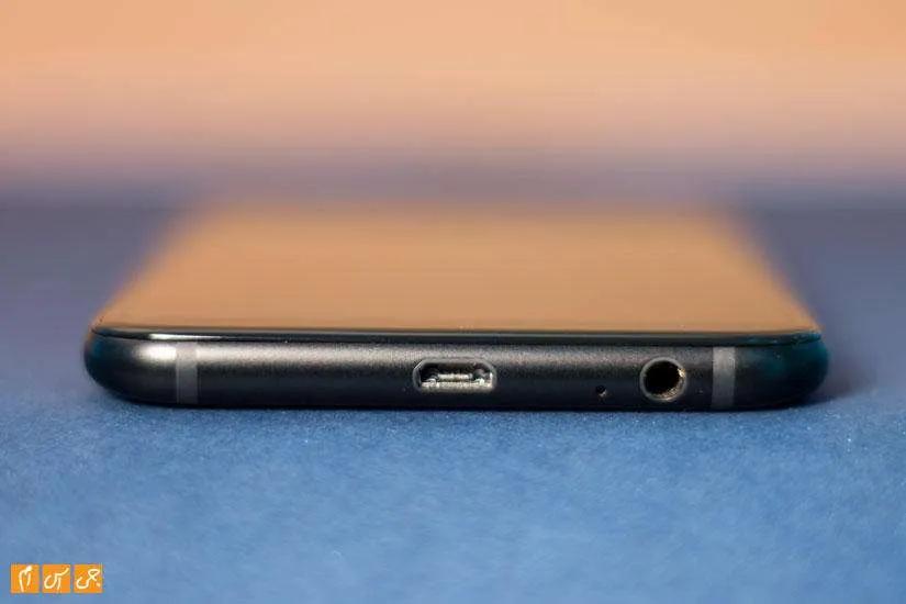 در لبه بالایی هیچ گزینهای دیده نمیشود اما در لبه پایینی شاهد حضور جک 3.5 میلیمتری هدفون، میکرفون اصلی و درگاه ارتباطی گوشی از نوع میکرو یو اس بی هستیم.